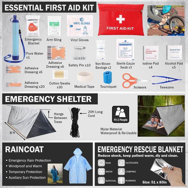 De alles-in-één tactische survivalrugzak EHBO-kit is ontworpen voor outdoor-avonturiers, voorbereiding op noodsituaties en rampenbestrijding. Verpakt in een duurzame rugzak in militaire stijl, combineert hij essentiële overlevingsgereedschappen, EHBO-benodigdheden en nooduitrusting in één complete oplossing.