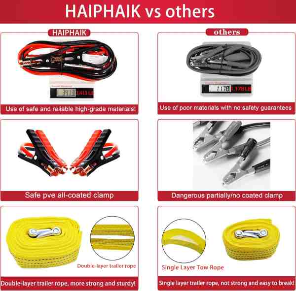【Noodcarkit】: de beste auto-noodset voor Europa 2026 bevat de essentiële gereedschapskist, multifunctionele schep, geavanceerde startkabels (11,8 FT), bandenreparatiegereedschap, trekkabel, overlevingsfluitje, zaklamp, handschoenen en meer. Met 124 stuks maximaliseert het uw veiligheid tijdens pech of ongelukken. 【Batterijstartkabels】: UL-gecertificeerde startkabels bieden superieure veiligheid en betrouwbaarheid in vergelijking met niet-gecertificeerde producten. Vier grote krokodillenklemmen zorgen voor een veilige grip, met geïsoleerde, met rubber beklede kaken. Het versterkte kabellichaam is gemaakt van hoogwaardig PVC-materiaal en biedt weerstand tegen bevriezing, scheurpreventie en knoopvrije prestaties! Een duurzame startkabel voor de batterij is uw betrouwbare metgezel voor reis- en kampeeravonturen! 【Autoreparatiegereedschapsset】: deze handige gereedschapsset bevat 16 essentiële gereedschappen! Bewaart netjes het onmisbare gereedschap voor noodreparaties aan voertuigen: moersleutels, tangen, hamer, spanningstester, magnetische platte en kruiskopschroevendraaiers, inbussleutels in vijf maten... Elk gereedschap heeft zijn eigen plek. De stevige kunststof behuizing is bestand tegen druk. Compact en draagbaar, bewaar hem overal! 【Veiligheidsset voor voertuigen langs de weg】: Geschikt voor sedans, SUV's, terreinvoertuigen, campercamping, vrachtwagenchauffeurs, motorrijders en andere voertuigtypen. Wees altijd voorbereid op noodsituaties! Deze compacte auto-noodset kan gemakkelijk in uw voertuig worden opgeborgen en bevat essentiële hulpmiddelen om zorgeloos reizen te garanderen. Het is het perfecte verrassingscadeau voor nieuwe autobezitters of slecht voorbereide bestuurders. 【Draagbare opvouwbare schep】 Combineert functionaliteit, veelzijdigheid en veiligheid: schepblad, zaagtanden, flesopener, houweel, spijkertrekker, schoffel, kompas. Volledig uitgeschoven lengte: 18 inch. Compact op te vouwen zodat hij gemakkelijk in een tas past. In noodgevallen kan hij door de grond graven om uw voertuig te bevrijden of ramen breken om te ontsnappen. Als u bij aankoop problemen ondervindt met het product, neem dan onmiddellijk contact met ons op. Wij zullen hulp bieden! Wij streven ernaar om uw klantervaring te verbeteren!.