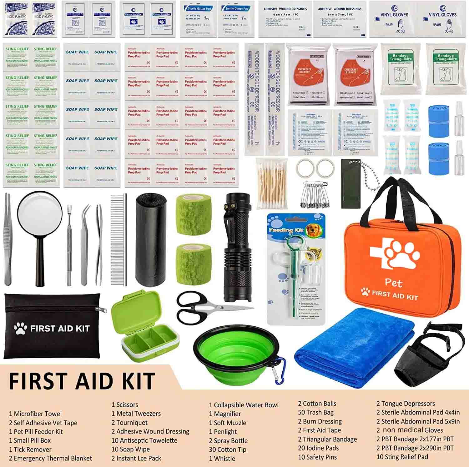 Cat First Aid Kit om verschillende noodsituaties voor katten en honden aan te pakken. De nylonstof is duurzaam en de binnenzak maakt gebruik van transparant materiaal om het gemakkelijk te vinden om verlopen items te vinden en te vervangen.