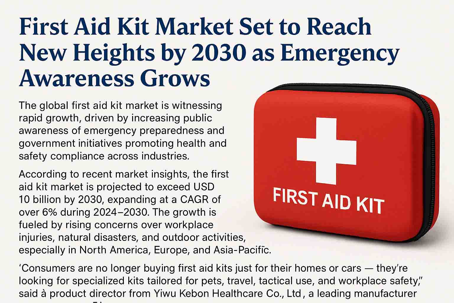 Volgens recente marktinzichten zal de EHBO -kitmarkt naar verwachting de USD 10 miljard tegen 2030 overschrijden, met een CAGR van meer dan 6% in 2024–2030. De groei wordt gevoed door toenemende bezorgdheid over letsel op de werkplek, natuurrampen en buitenactiviteiten, vooral in Noord-Amerika, Europa en Azië-Pacific.