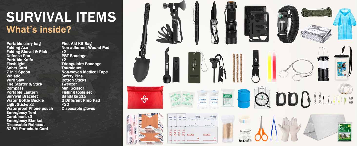 kit biedt essentiële hulpmiddelen voor overleving, navigatie, eerste hulp en noodsignalering.