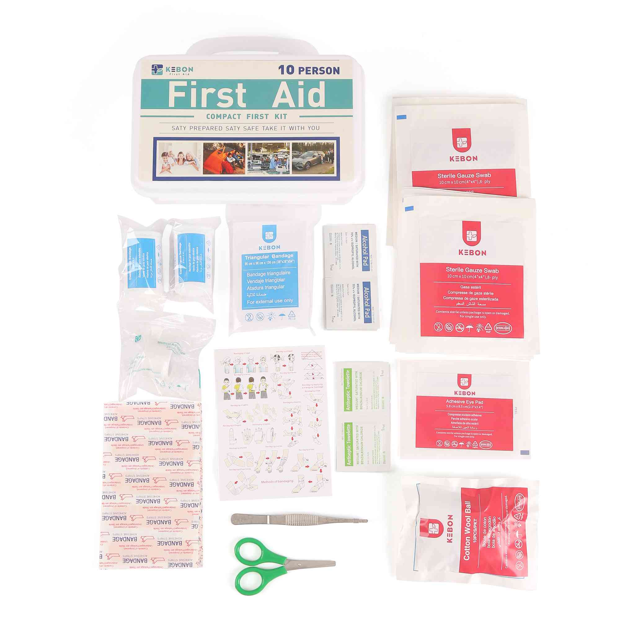| Eerstehulpdoos | 21 cm x 13 cm x 5 cm (8,3 x 5,1 x 2 inch) | 1 |